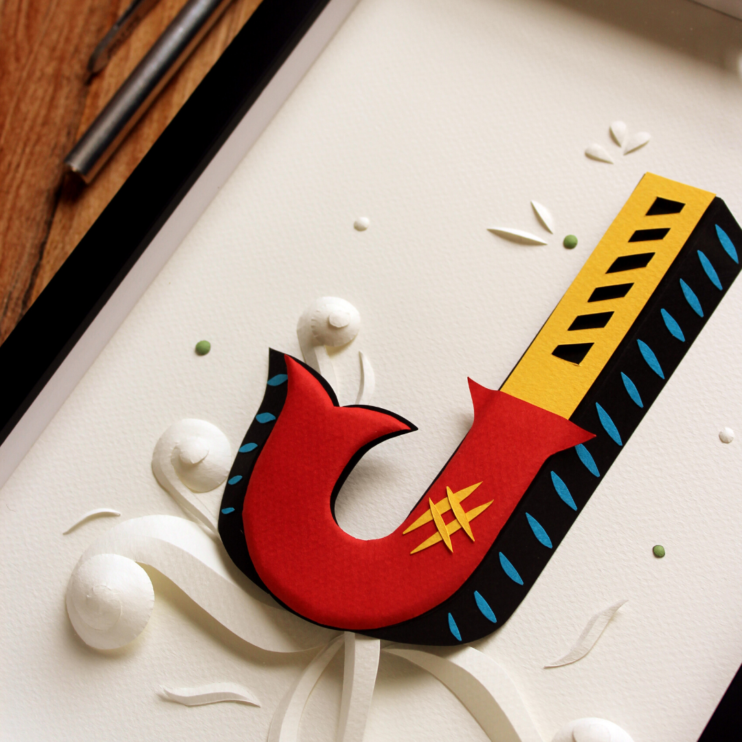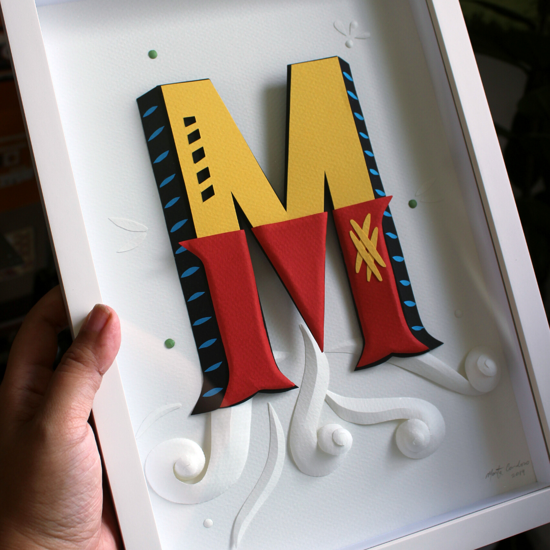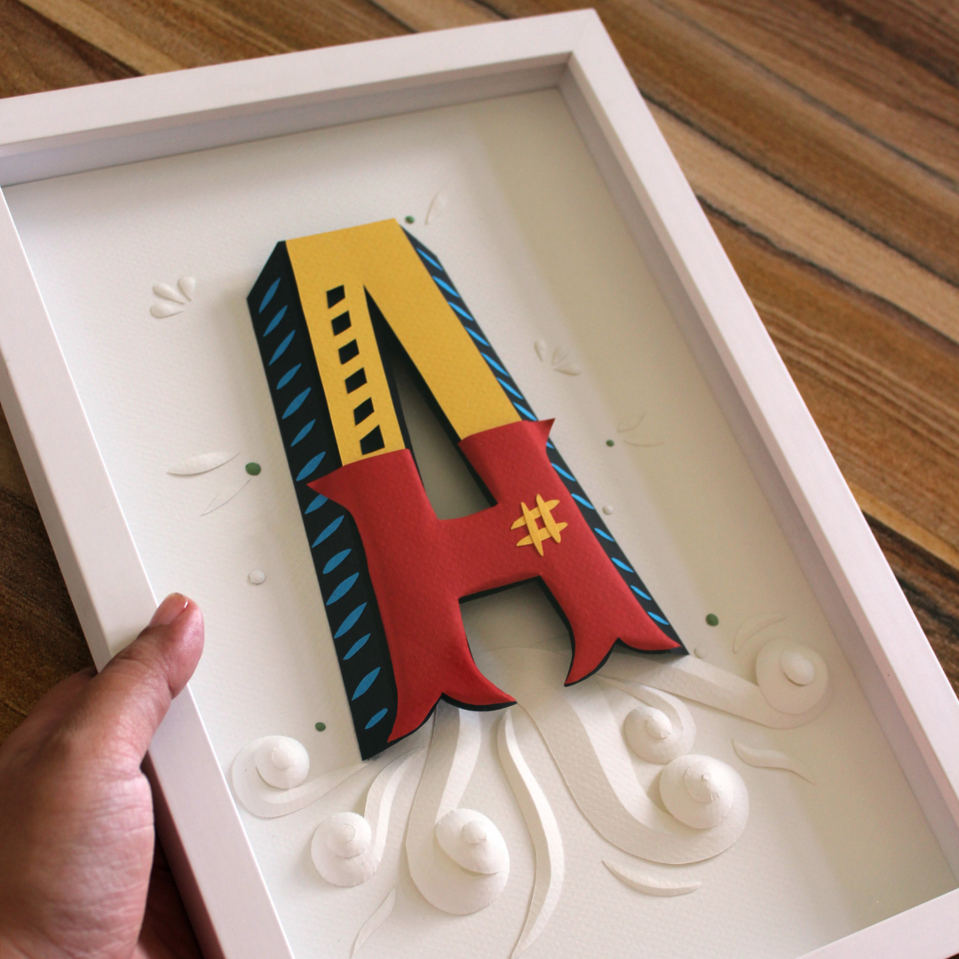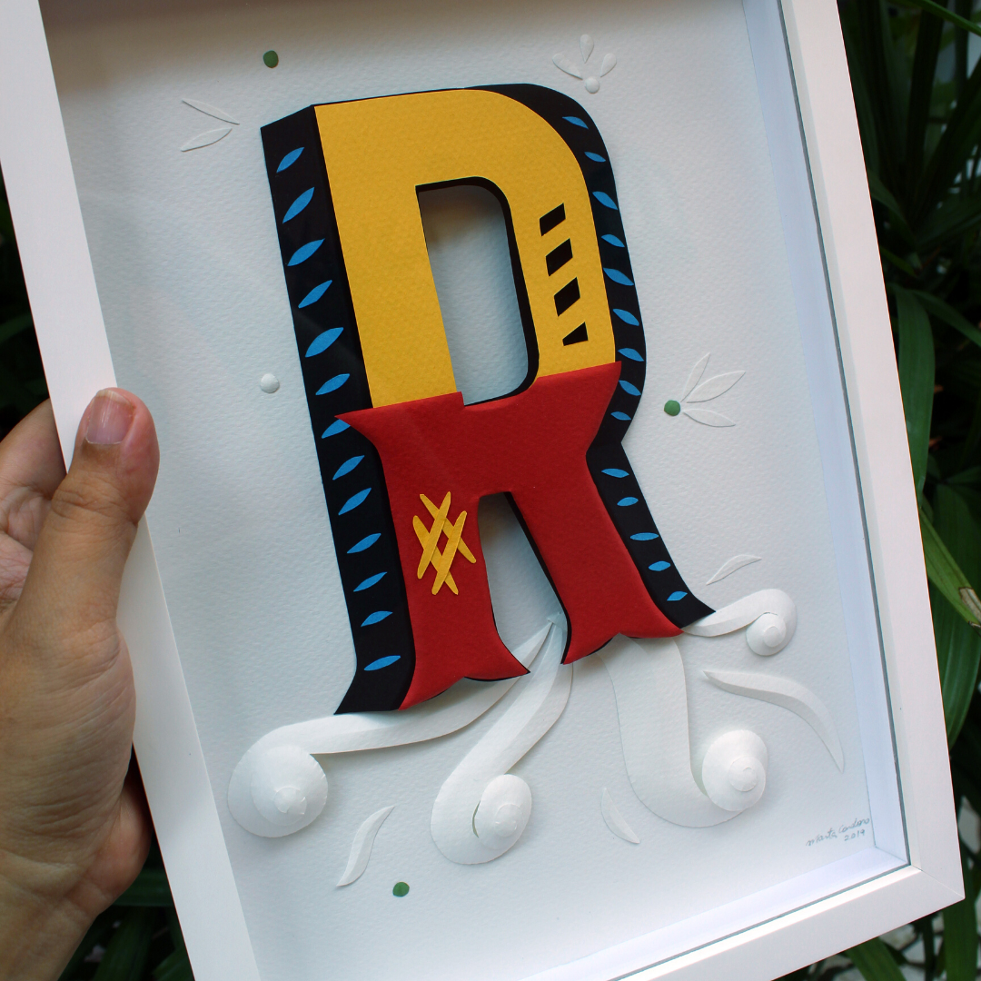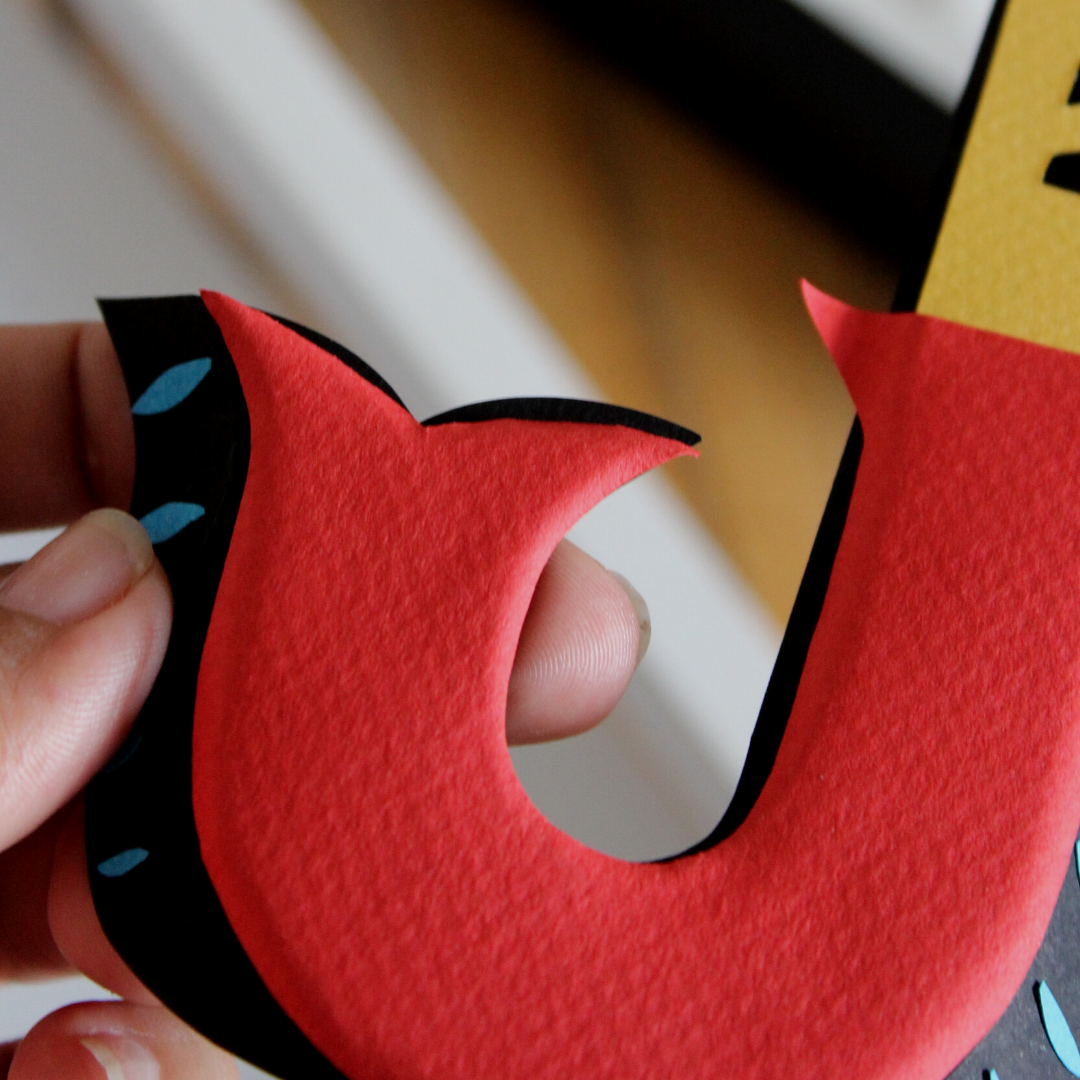 Letras ganham volume com técnica de escultura em papel. Cortei tudo com estilete de precisão e tesoura. A inspiração são as letras de embarcações típicas da Amazônia.