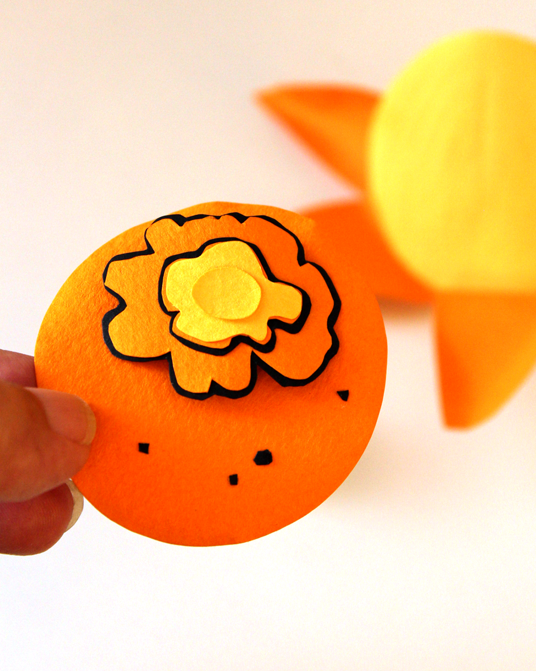 Escultura em papel representando a pupunha, fruto nativo da região amazônica.
